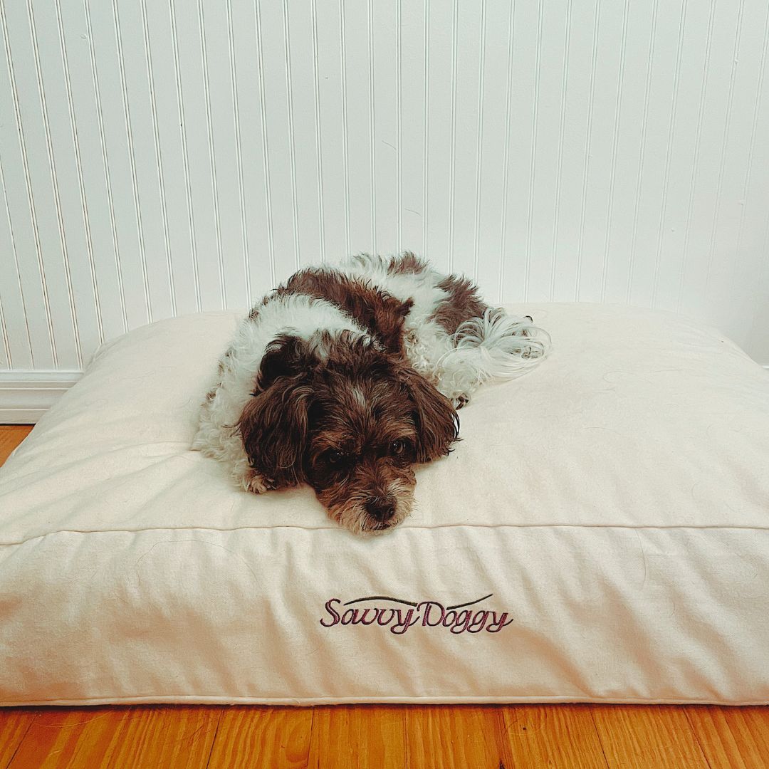 Our Savvy Doggy pet beds feature the purest natural latex foam and organic cotton casings.